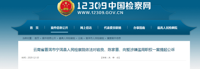 普洱市宁洱县人民检察院依法对岩良、陈家普、向堑涉嫌滥用职权一案提起公诉