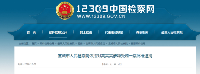 宣威市人民检察院依法以涉嫌受贿罪对高某某作出批准逮捕决定。案件在进一步办理中。