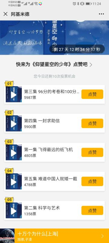 《仰望星空的少年》由33位层层选拔出的小学生主播倾情演绎,从少年的视角剖析“中国导弹之父”钱学森伟大的一生。广播剧由《飞得最远的纸飞机》《科学与艺术》《96分的考卷和100分的实验报告》《一封求助信》《难道中国人就矮一截?》等5个小故事组成,目前已在阿基米德《十万个为什么》栏目社区上线,感兴趣的观众可以前往收听,并点赞自己最喜爱的故事!