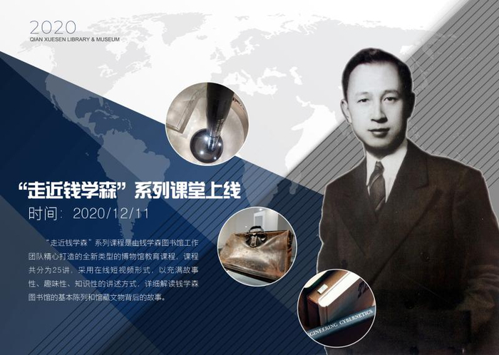 12月15日,由钱学森图书馆工作团队精心打造的全新类型的博物馆教育课程“走近钱学森”系列课程在钱馆微信公众号正式上线!课程由钱学森图书馆执行馆长张凯与多位资深讲解员共同演绎,通过充满故事性、趣味性、知识性的在线短视频微课程,详细解读钱学森图书馆的基本陈列和馆藏文物背后的故事。