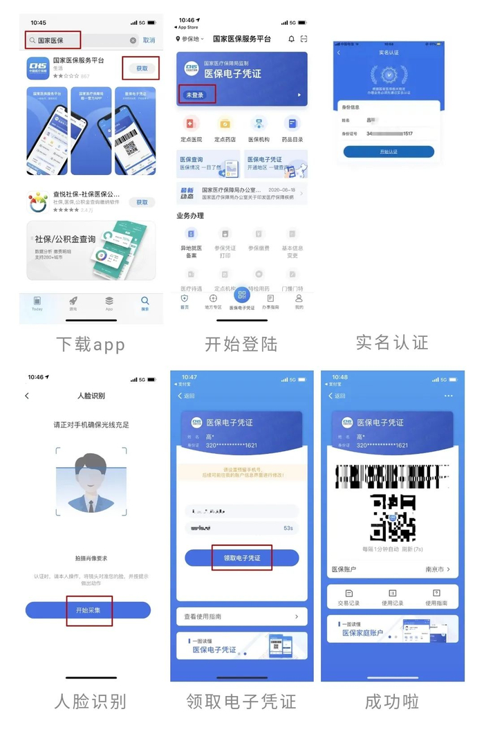 用手机下载并登录进入国家医保APP,进入国家医保便民服务平台,点击“激活医保电子凭证”,输入姓名和身份证号,进行实名认证,然后进行人脸认证,选择参保城市进行激活,并设置凭证密码,就完成了。