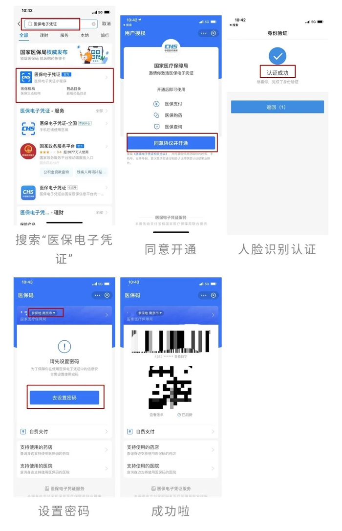 搜索“医保电子凭证”,进入“医保电子凭证”,点击“同意协议并激活”,通过人脸识别认证设置6位数字密码,设置成功后,就可以使用了。