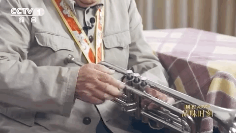 当老人用略显颤抖的双手,拿起小号吹响《义勇军进行曲》时,现场观众起立合唱,肃然起敬。