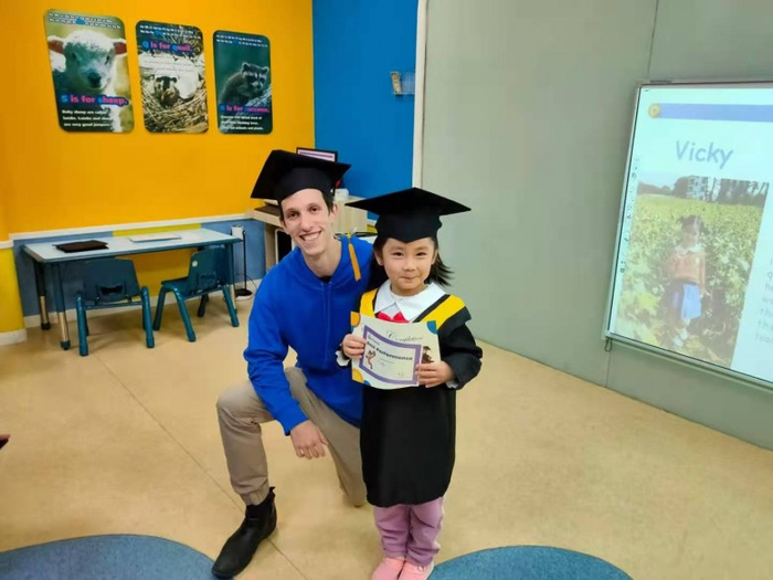 而且,这对她的中文也是有促进作用的。Vicky开始英语启蒙的时候,很多中文还都是不懂的,但是在英语启蒙的过程中,认知到了很多事物,比如东南西北啊这些,当时中文都还没有教,但在英语中学了,她就自然掌握了。双语学习模式,对思维提升也蛮有好处的。
