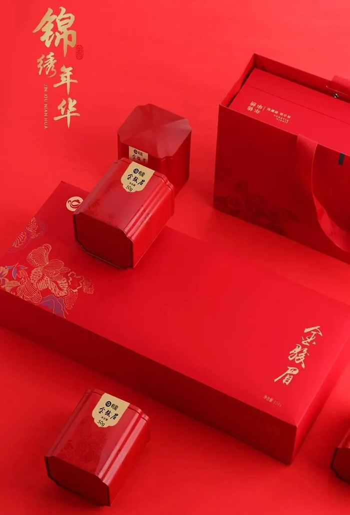 此款【锦绣年华】金骏眉礼盒,中国红加上烫金点缀,尊贵大气,气度不凡。