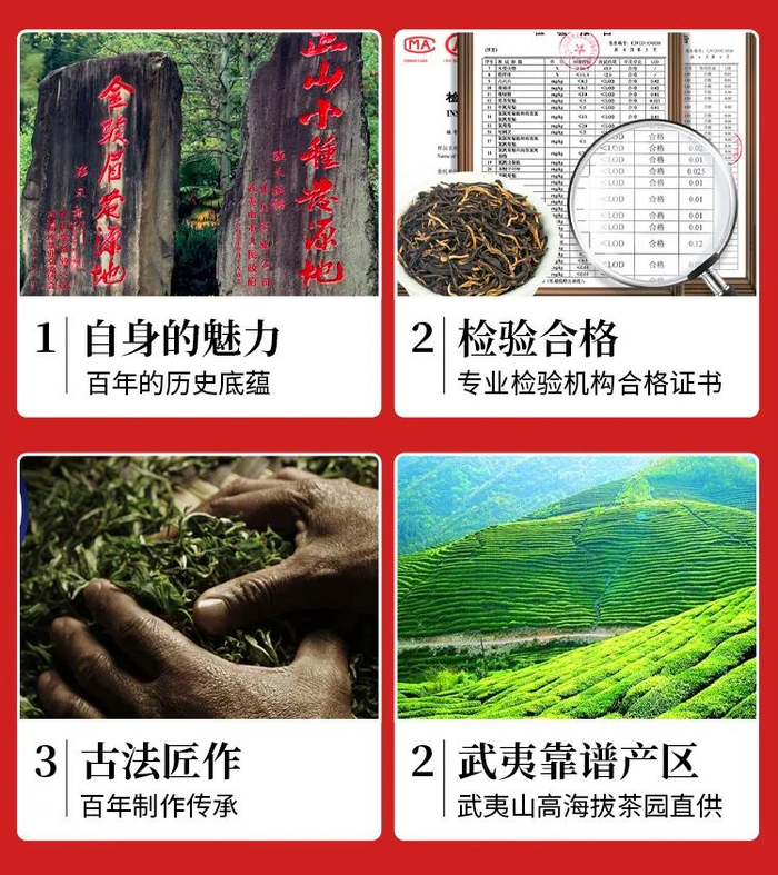 经改良制作工艺制成,将正山小种成熟圆润的茶香,转化成金骏眉高扬的蜜香。