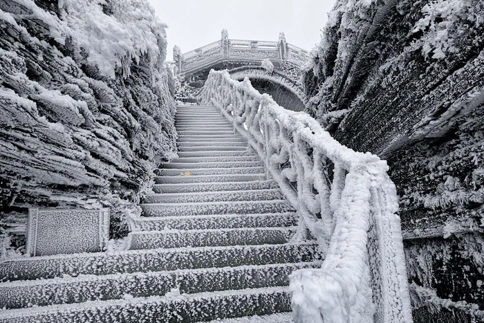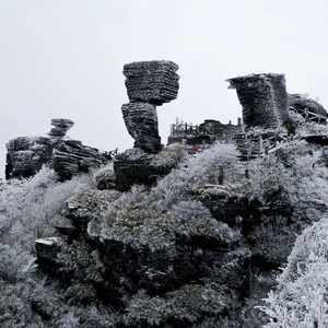 12月14日,受强冷空气影响,贵州梵净山出现小雪天气,在雪的衬托下冰清玉洁、银装素裹,犹如白色梦幻世界,晶莹如玉的雪景将梵净山衬托得如同一幅素净的山水画,煞是美丽。为安全起见,相关部门暂时对景区实行关闭。(图文/夏江华 吴雪亚)