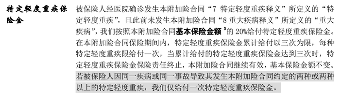 在保障责任上,也延续了平安系轻症不分组多次赔付、独立给付等经典优势,即50种轻症最多可赔付3次,每种轻症限赔付1次,且轻症赔付后不影响重大疾病的赔付。