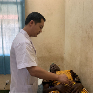 在抵达布隆迪布琼布拉大王子医院后不久,杨利就接诊了一位60多岁的腰椎间盘突出患者。经过问诊,他决定拿出“看家本领”为老人治病。