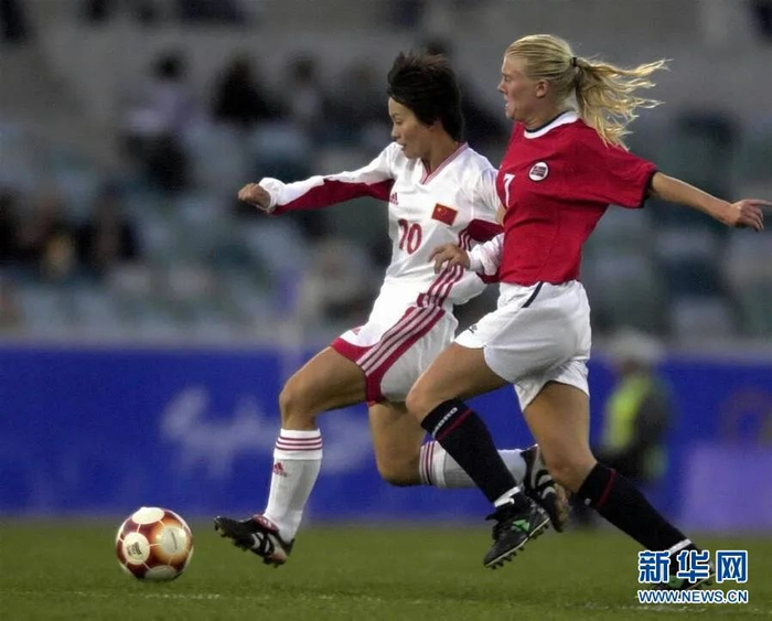 中国女足在2000年悉尼奥运会女足小组赛中以1:2负于挪威队,被挤出前四名。新华社发