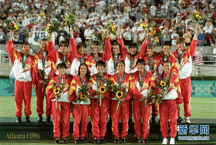1996年8月1日,1996年亚特兰大奥运会女子足球决赛中,中国队以1:2负于美国队,获得银牌。新华社发