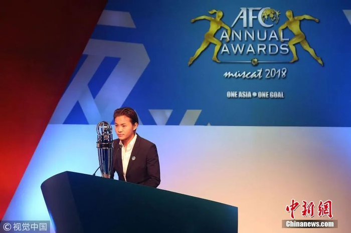 2018年11月29日,王霜荣获2018年亚洲足球小姐。图片来源:视觉中国