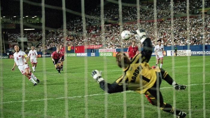1999年世界杯1/4决赛,孙雯攻破挪威大门。图片来源:国际足联网站