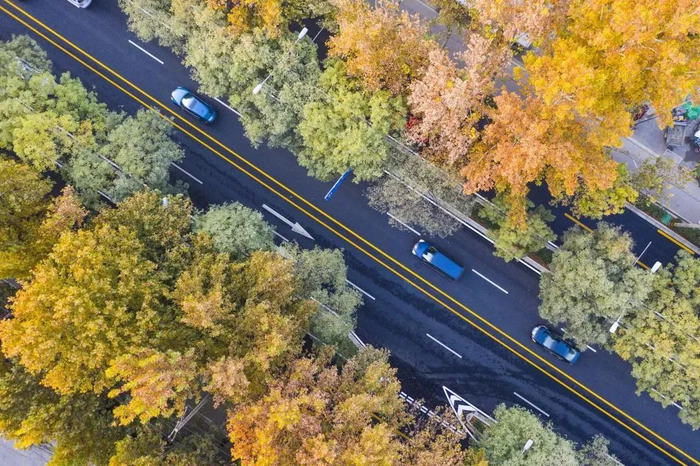 增加道路两侧绿化带密度,打造舒适的行车环境,道路两侧高大的法桐和解放路留存的老建筑形成了一道独特的风景,构成济南别具一格的风韵。