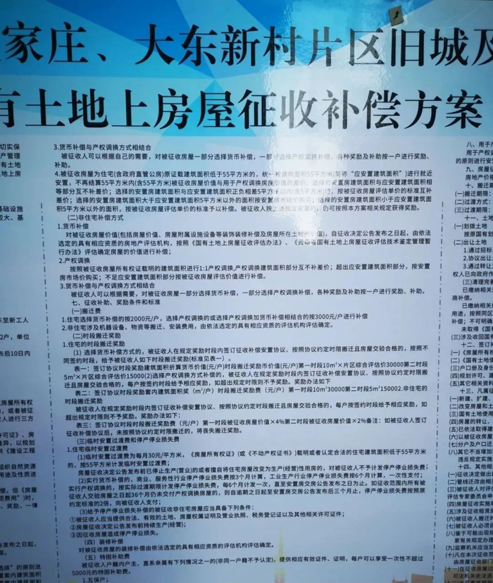 公告显示,根据相关文件规定,已对《盘龙区伍家庄、大东新村片区旧城及城中村改造项目国有土地上房屋征收补偿安置方案》进行论证,并根据论证意见进行了修改完善。公开征求意见的期限为30日,自本公告发布之日开始计算,如相关单位人员等社会公众对前述房屋征收补偿方案(征求意见稿)有任何意见或建议的,请在征求意见期限内,以书面形式向昆明市盘龙区人民政府鼓楼街道办事处提出,并附身份证明和联系方式。