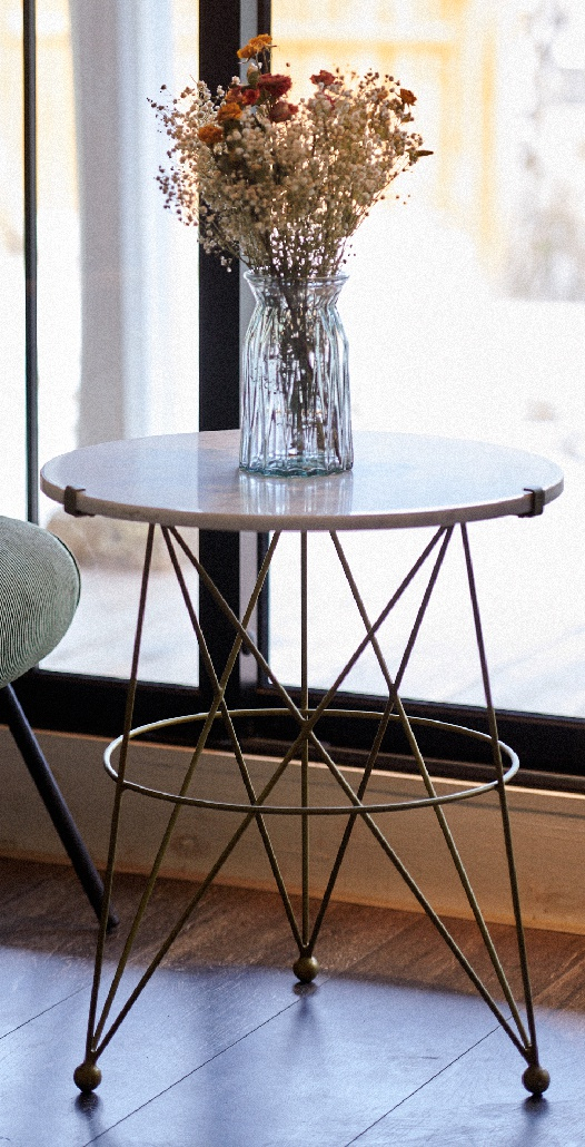 脚桌可以说是家居中的百搭单品,放在哪里都没有违和感,而且还很实用。随手放一杯热茶一本书,在阳光和煦的午后找个舒适角落小憩,岁月静好就是如此简单。 美克美家的这个“艾丝戴拉”脚桌的设计也是可圈可点,浪漫又简约。我喜欢这个铁艺支架,三角受力,稳定性好的同时显得很轻盈。