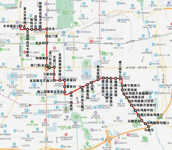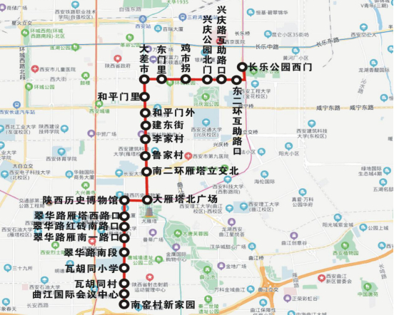 新增站点10个:世家星城、西安通信学院、丈八东路东仪路口、潘家庄、明德门、杨家村、朱雀大街青松路口、西八里村、交大一附院、长安路雁塔西路口。