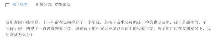 其次,你朋友选择在尊重被收养人意愿的基础上,通过诉讼确认事实收养关系。确定收养关系是否成立,在适用《收养法》等相关法律规定的同时,亦应当考虑子女的意愿,维护被收养人的权益。司法实践中审理时法官可以依据法律精神,在尊重人性、尊重亲情、尊重事实的基础上,从实际出发,做出确认事实收养发生亲属法律行为的司法裁判。如不能通过诉讼确认事实收养关系,养父母可以通过诉讼请求生父母返还这十三年来所支付的抚养费用。