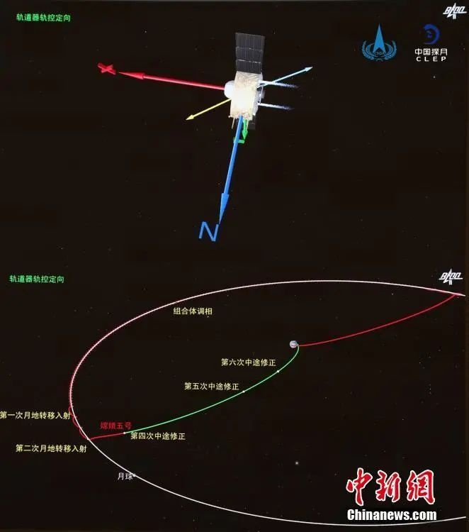 图为嫦娥五号探测器月地转移轨道示意图。中新社发 中国国家航天局 供图
