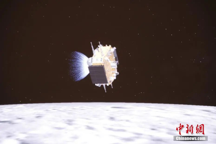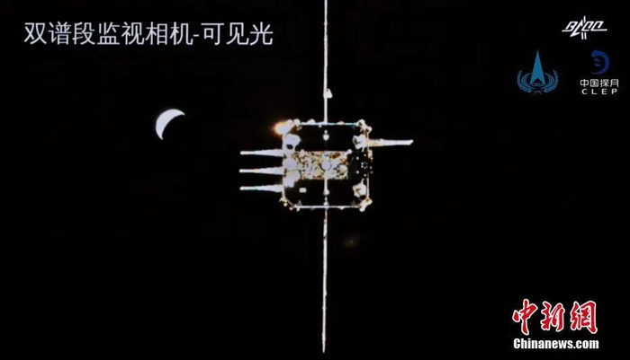 北京时间12月6日5时42分,嫦娥五号上升器成功与轨道器和返回器组合体交会对接。图为轨道器逐渐接近上升器。图片来源:国家航天局供图12月8日6时59分,嫦娥五号上升器按照地面指令受控离轨,7时30分左右降落在月面经度0度、南纬30度附近的预定落点。 12月12日至16日,嫦娥五号轨道器和返回器组合体在完成2次月地转移入射、3次轨道修正后,返回器于12月17日与轨道器分离并重返地球。