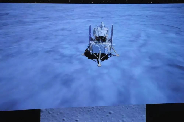 12月1日拍摄的嫦娥五号探测器着陆画面。新华社记者 金立旺 摄12月3日23时10分,嫦娥五号上升器3000N发动机工作约6分钟,成功将携带样品的上升器送入到预定环月轨道。这是中国首次实现地外天体起飞。