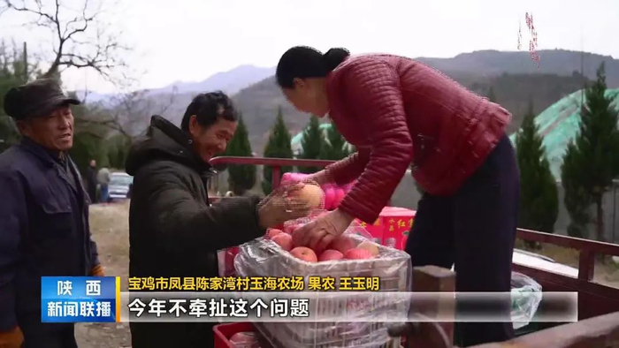 宝鸡凤县陈家湾村玉海农场果农 王玉明:今年种了60多亩,产量20多万斤,主要不是今年凤县高速也通了,运输也比较方便,往年要是大雪一封山的话,就运不出去,今年不牵扯这个问题,现在交通一便利以后,客商也就来得多了。