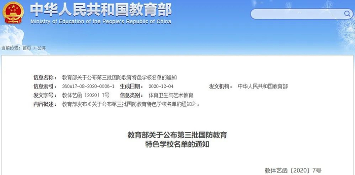 教育部最新公布!省级教育行政部门推荐基础上,经专家遴选与公示,教育部综合认定北京航空航天大学等1095所学校为第三批国防教育特色学校,雄安2所学校在内↓↓↓