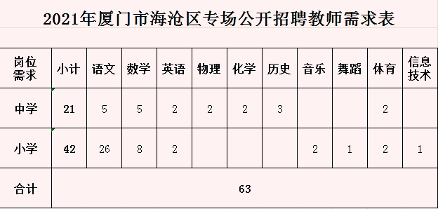 厦门三个区招聘教师159人