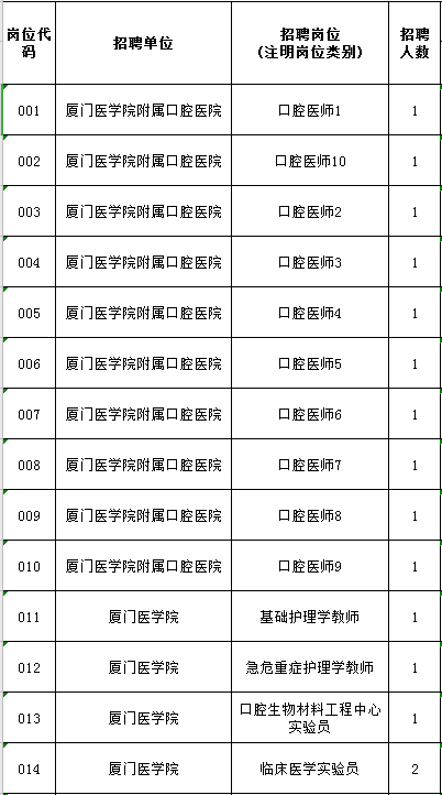 厦门医学院及其附属医院招聘
