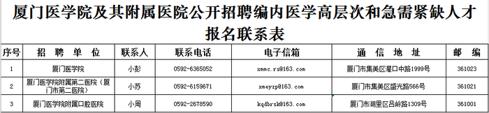▶厦门医学院及其附属医院招聘编内医学高层次和急需紧缺人才68名