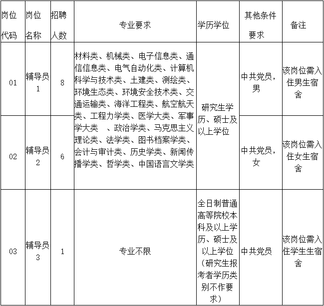 招聘辅导员15名