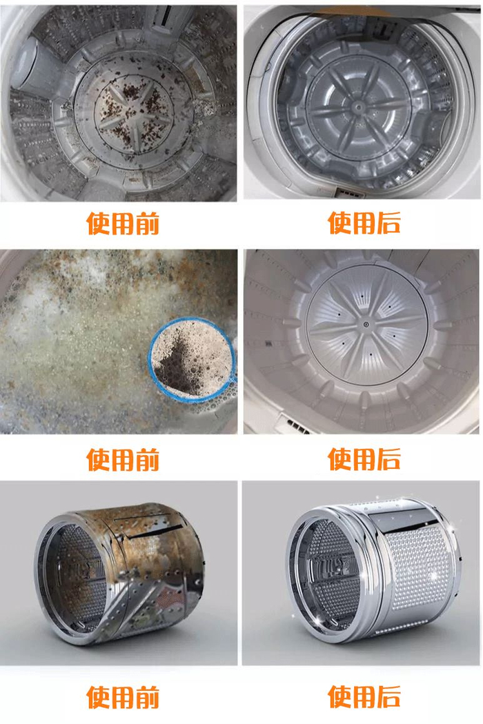 像洗衣机内筒和外筒夹层这些容易藏污的地方,固体清洁剂很难起到清洁效果。