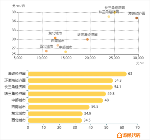 《报告》也显示,环渤海经济圈以及长三角经济圈多处于较低租金回报率区间,主要原因在于这些区域房地产市场活跃,城市的房价水平居高不下,房价涨幅高于租金涨幅。