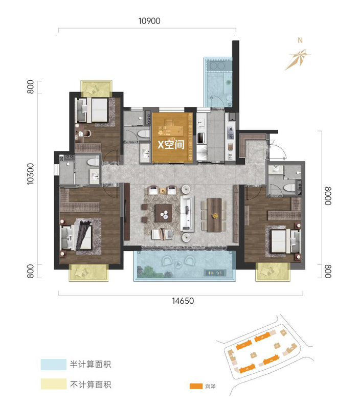 套房+X空间自由组合搭配,满足家庭全成长周期需求。