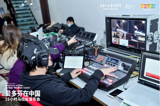 上百小时的缜密筹备,让音乐会直播的开展忙而不乱。台上的演奏家、嘉宾、主持人,台下的摄像师、调音师、总控师宛如钟表齿轮般紧密联动,最终为听众、观众呈现了一场持续16小时的精彩音乐会。