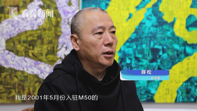 艺术家薛松说:“我是2001年5月份入驻M50的。离家近,空间又够,然后房租也要能接受。在周边找了一年多,随后决定入驻这里。”