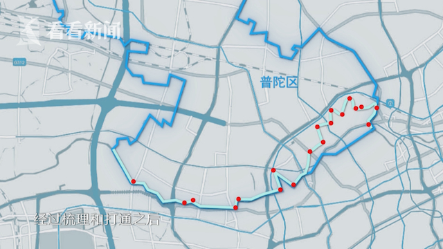 苏州河普陀段设计师毛项杰介绍:“苏州河普陀段是2018年10月份开始陆续施工的。我们当时梳理下来有19个断点,经过梳理和打通之后,基本上已经贯通的节点是非常多的。”