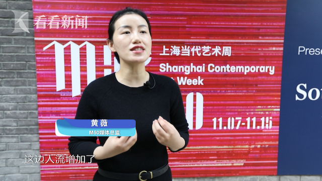 M50市场营销总监黄薇介绍:“目前园区里面这样子的画廊和艺术家工作室和设计公司,一共是有146家。不会因为景观步道开通了,这边人流增加了,我们就会恶意地增加房租,这也是不会的。第二点,园区里边的这些艺术家,因为看到了景观步道的开通之后,他们也愿意把自己的一些作品,拿到景观步道来供市民游客进行欣赏的。M50也是愿意打开这个平台,一方面连接到城市微更新。另外一方面,连接到我们这边比较活跃的艺术家,参与在我们整个一个城市发展当中来。”