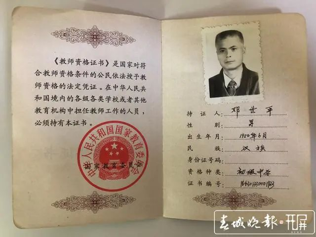 邓世平的教师资格证