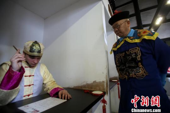 资料图:“洋考生”体验贡院赶考。 王磊 摄