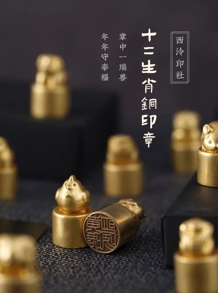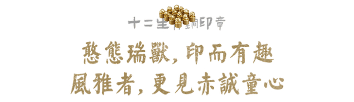 用古朴纯铜融合古老生肖文化,打造出一枚枚憨态可掬的生肖印章,既有历史文化之重,又符合现代审美,可赏可藏。