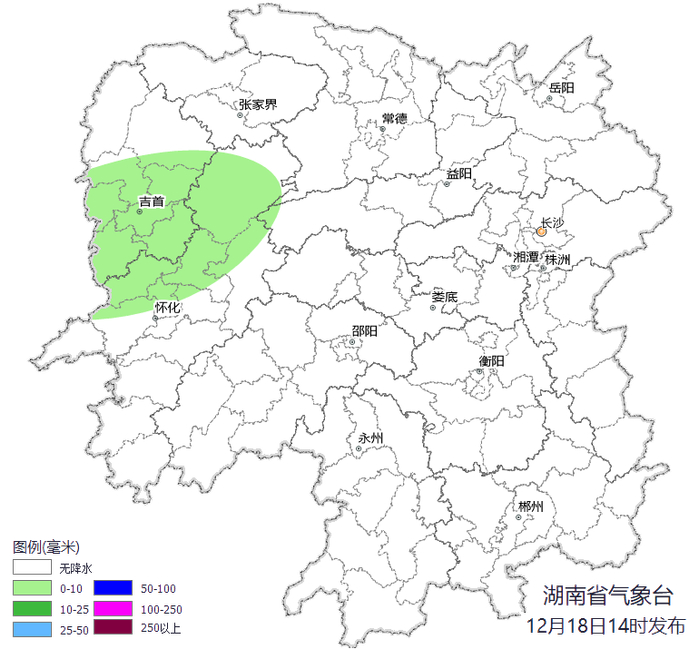 湖南降水量预报(12月18日20时~19日20时)