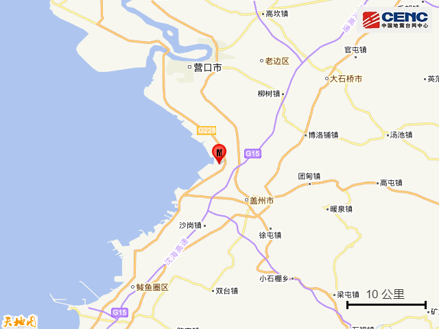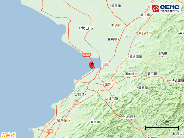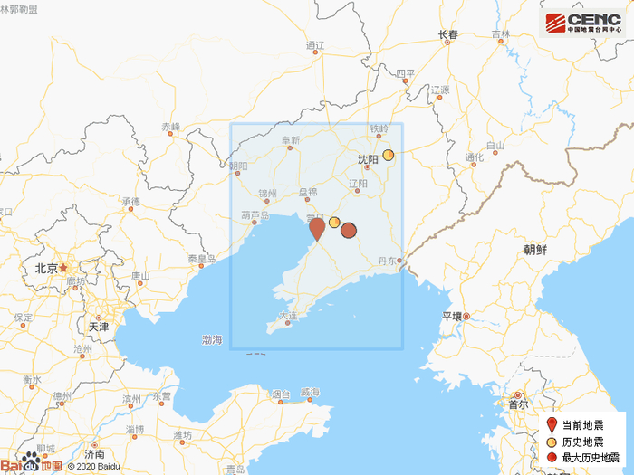 历史地震:根据中国地震台网速报目录,震中周边200公里内近5年来发生3级以上地震共6次,最大地震是2017年12月19日在辽宁鞍山市海城市发生的4.4级地震(距离本次震中64公里),历史地震分布如图。