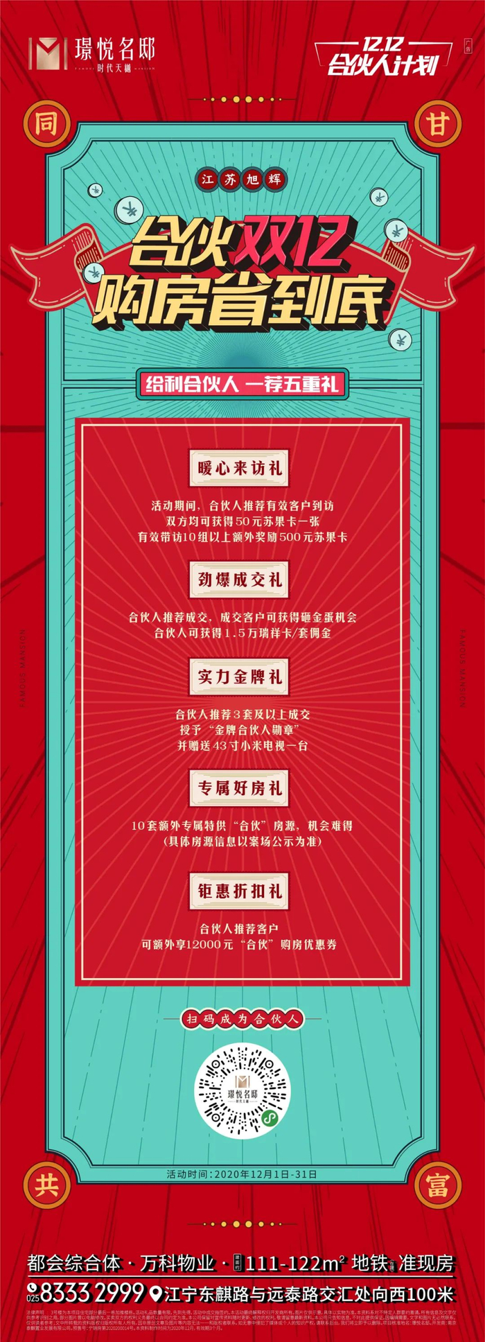 此外,即日起至12月31日,参与璟悦名邸“合伙双12,购房省到底”活动,可享受更多优惠及福利,惊喜等你来!