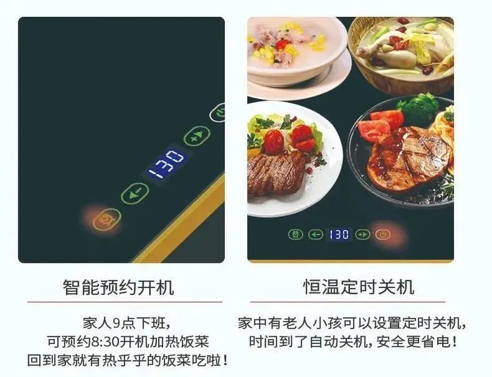 除此,艾尔温饭菜保温板还有40℃到130℃九个温度模式可以选择。