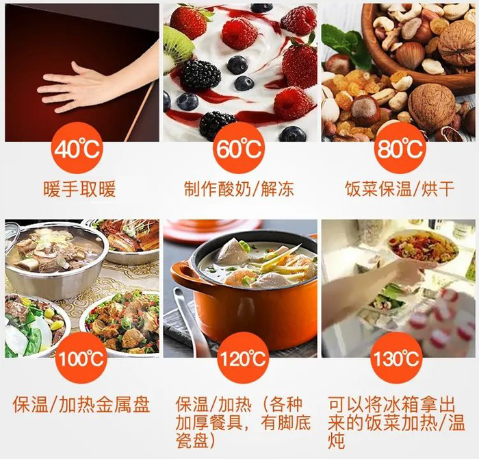 艾尔温饭菜保温板采用纳米航天发热技术,利用红外线加热,聚能无辐射更健康。