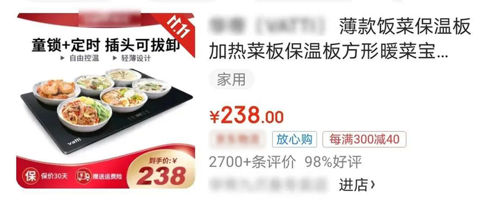 只需一支口红的钱,199元!就可以把这个艾尔温饭菜保温板带回家啦。