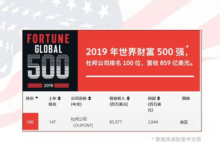 杜邦成立于1802年,是世界五百强企业之一。目前在全球70多个国家经营业务,提供以科技为基础的材料、原料和解决方案,致力于为各行各业的人们生活带来革新。