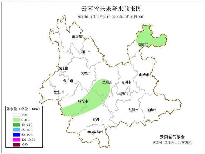 20日20时-21日20时:昭通北部阴有小雨局部有小雪;其它地区多云局部有阵雨。