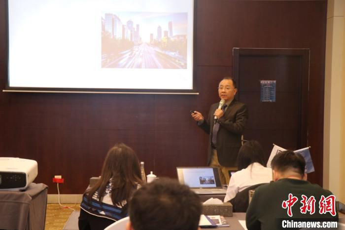 《2020中国上市公司法商价值报告Ⅳ》发布会在京举行,中国政法大学法商管理研究中心主任、法商领道研究院创始人孙选中在会上作观点分享。 夏宾 摄